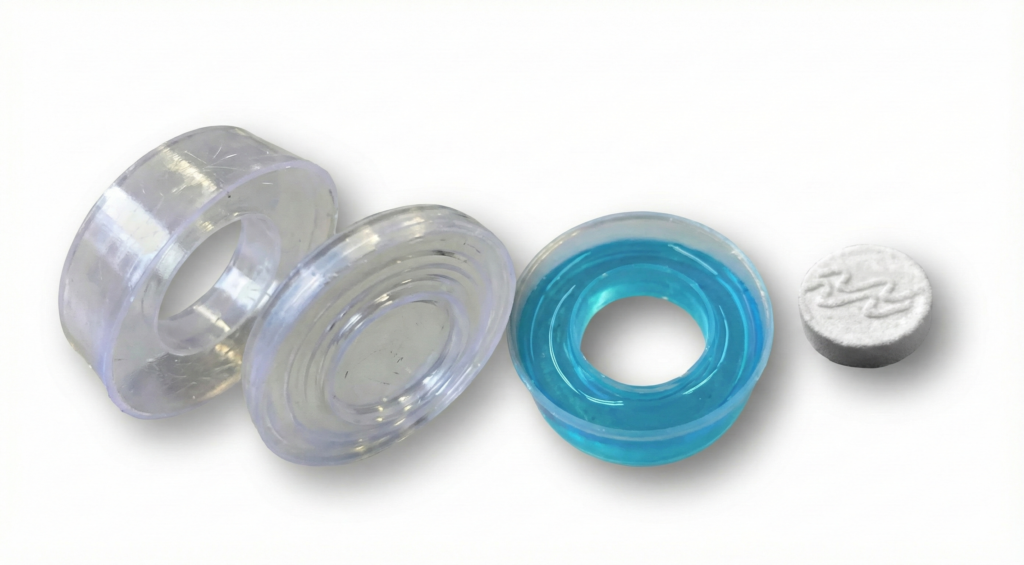 Press down on the centre of the pod to activate the process. This breaks the seal and allows the cleansing solution to soak into the dry cloth. Watch as it unfurls.